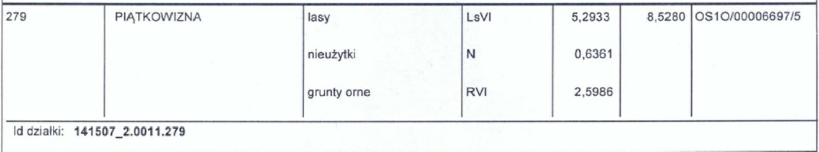 Działka rolno-leśna w Piątkowiźnie nr ...279